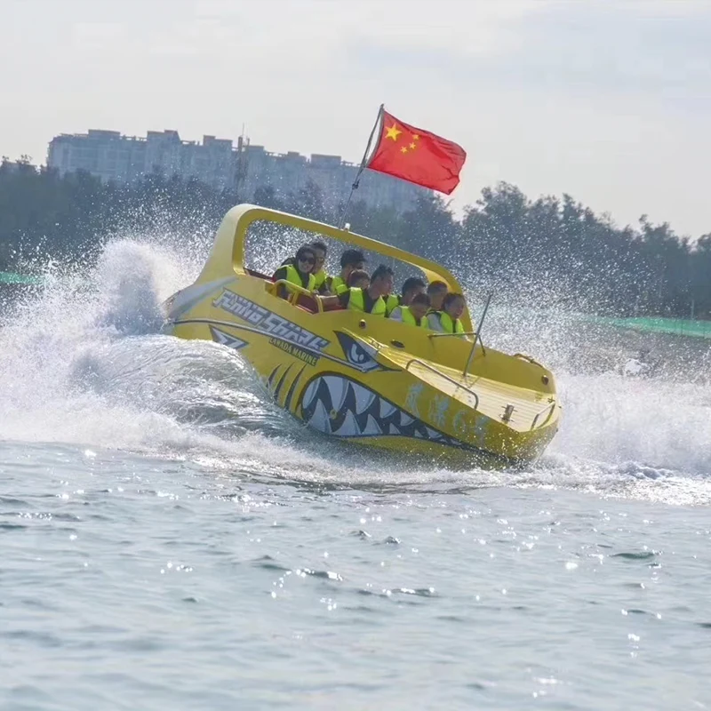 Vår Lawada®Kommersielle jet -strømbåter designet med valgfri lengde (21ft og 26ft), og med tilpassede motorer (enkelt eller tvilling, som starter på 270 hk). Den elegante designen navigerer smale vannveier uten problemer, med smidig håndtering for presis kontroll. Ideell for spennende turer i kommersielle omgivelser.